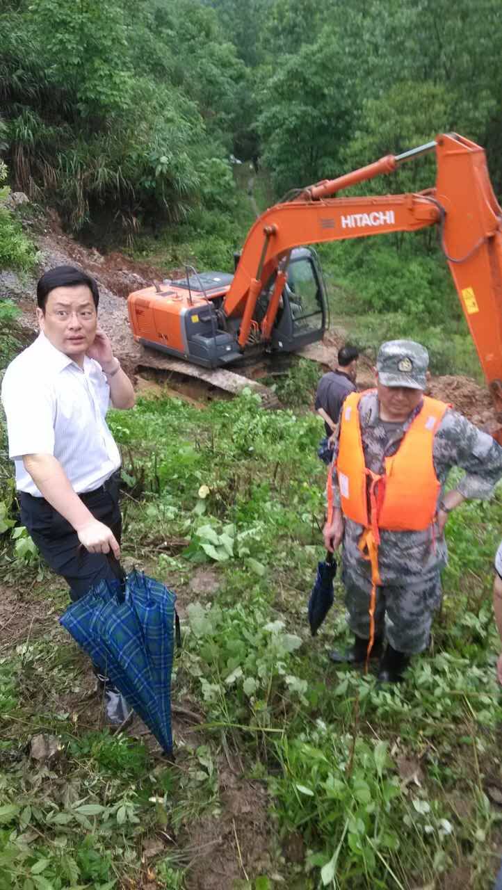 6月2日上午7点丁小强市长、军区王炽松司令员在破冲口水库指挥抢险