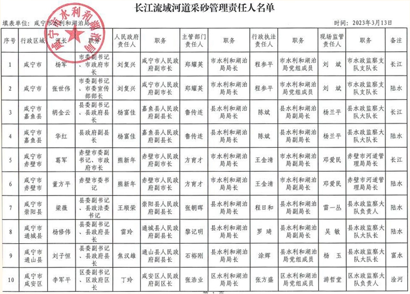 十大信誉彩票平台长江流域河道采砂管理责任人名单