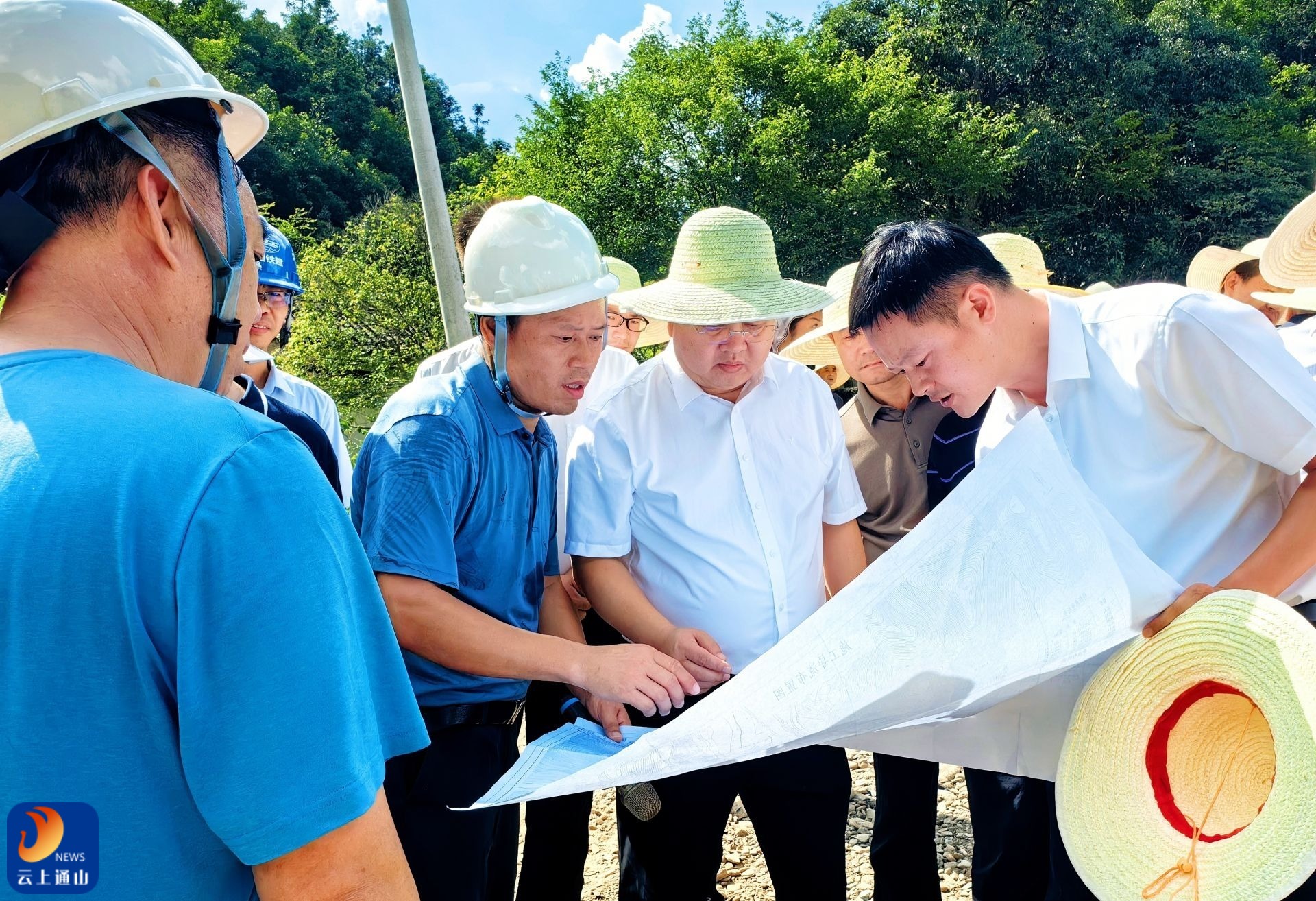 云上通山报道:(全媒体记者 孟军)8月5日,县委书记、黄荆口水库项目建设指挥部政委陈洪豪深入项目建设一线,现场察看了水库大坝坝址、复建公路,结合图纸和听取汇报,详细了解了水库建设工作推进情况,并就下一步如何加快项目建设工作提出意见。他要求,相关乡镇、部门要统筹抓好项目建设,压紧压实各方责任,紧扣时间节点,紧盯目标任务,严把质量关口,加快工程建设进度,迅速掀起黄荆口水库建设的高潮,早日造福民众。县人大常委会主任方家忠,县领导章斌、徐丽华、王知非、游涛、郑佳、程景家参加调研。