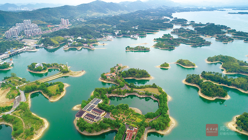 赤壁陆水湖风景区位于赤壁市东南部,是国家级重点旅游风景名胜区,水域面积57平方公里,蓄水量7.2亿立方米,湖中800多个岛屿星罗棋布,景区以山幽、林绿、水清、岛秀闻名遐迩,被誉为“咸宁的千岛湖”。 记者 赵忠志/摄
