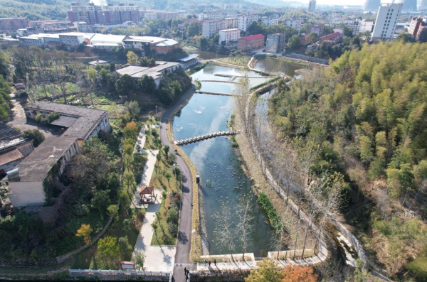 泉门河湿地周边,总长约1087米的巡湖道路平整舒适,亲水平台上的木质景观亭,是附近居民休闲游憩的好去处。现在,郑梅英一早一晚都会过来散步、锻炼身体。她说“这里的空气清新,没有污染和灰尘。”