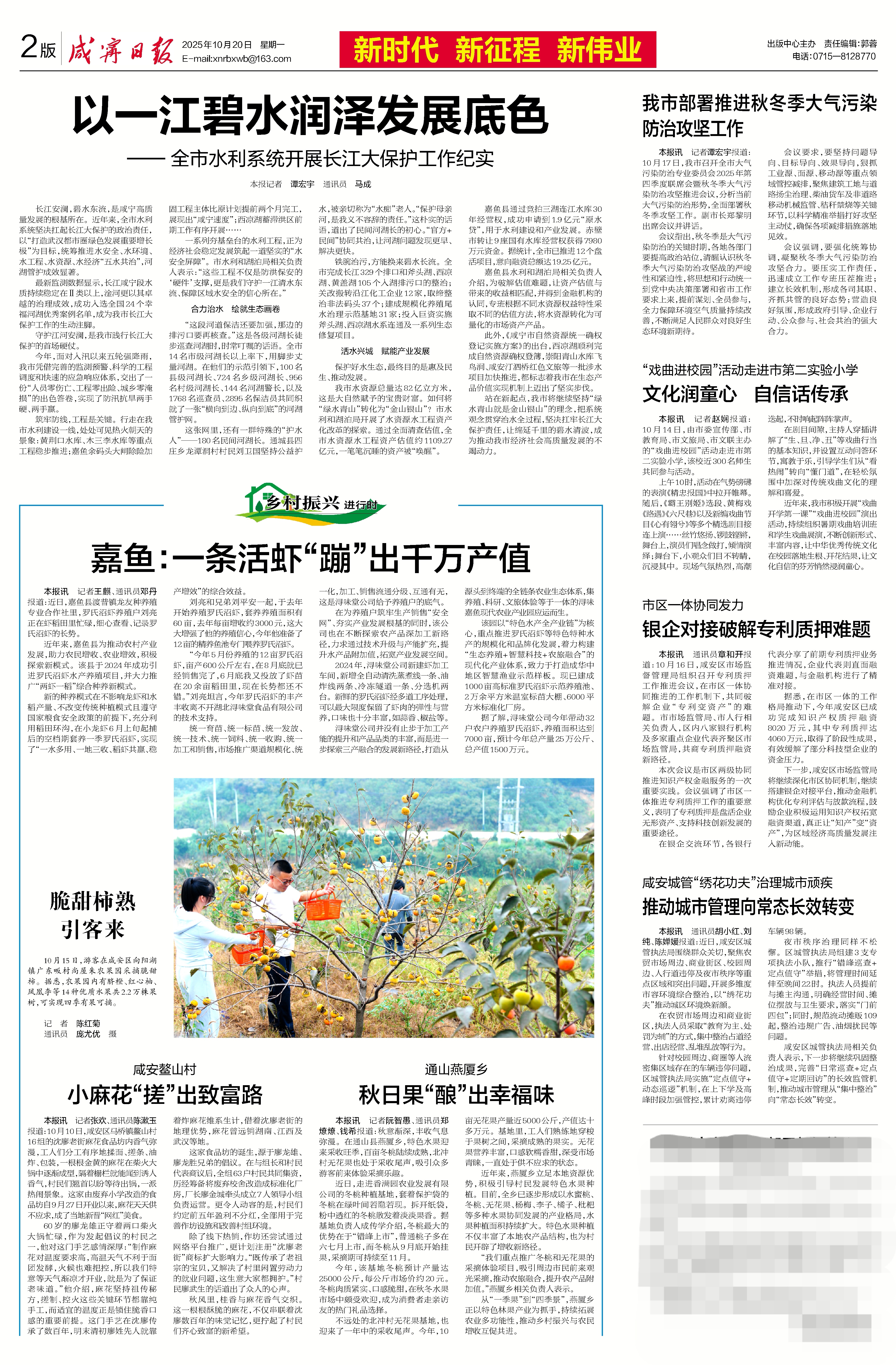 最新监测数据显示,长江咸宁段水质持续稳定在Ⅱ类以上,淦河更以其卓越的治理成效,成功入选全国24个幸福河湖优秀案例名单,成为我市长江大保护工作的生动注脚。