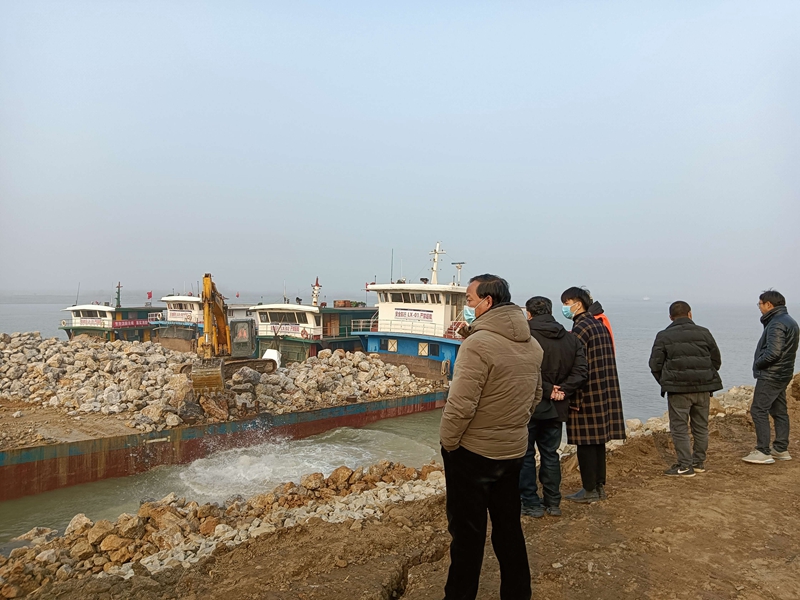 2023年1月3日,新年上班第一天,市堤防局局长陈征波率队到嘉鱼县查看邱家湾崩岸险情应急整治施工现场。