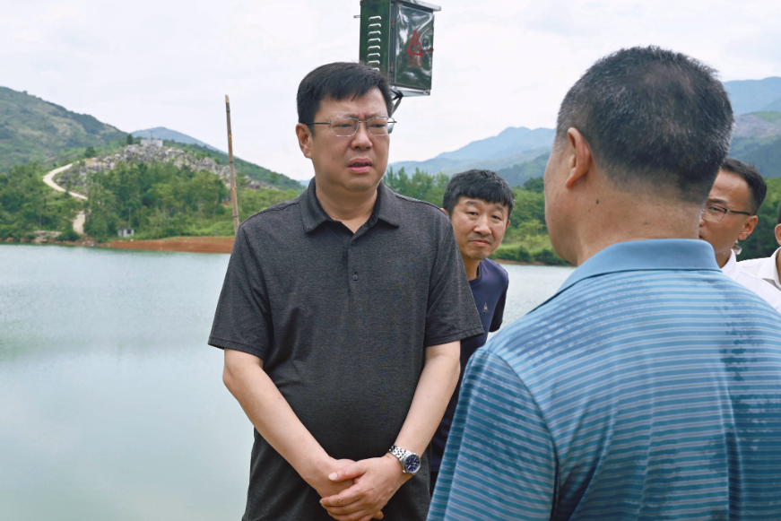 杨军先后深入崇阳县路口镇下岩水库、港口乡横堤水库,现场检查水库蓄水容量和水位、用水调度和管护等情况,询问水库行政责任人、技术责任人以及巡查责任人关于防汛抗旱工作准备情况,随后徒步登上港口乡燕子窝塘,实地调研“头顶塘堰”除险加固和安全防范工作。