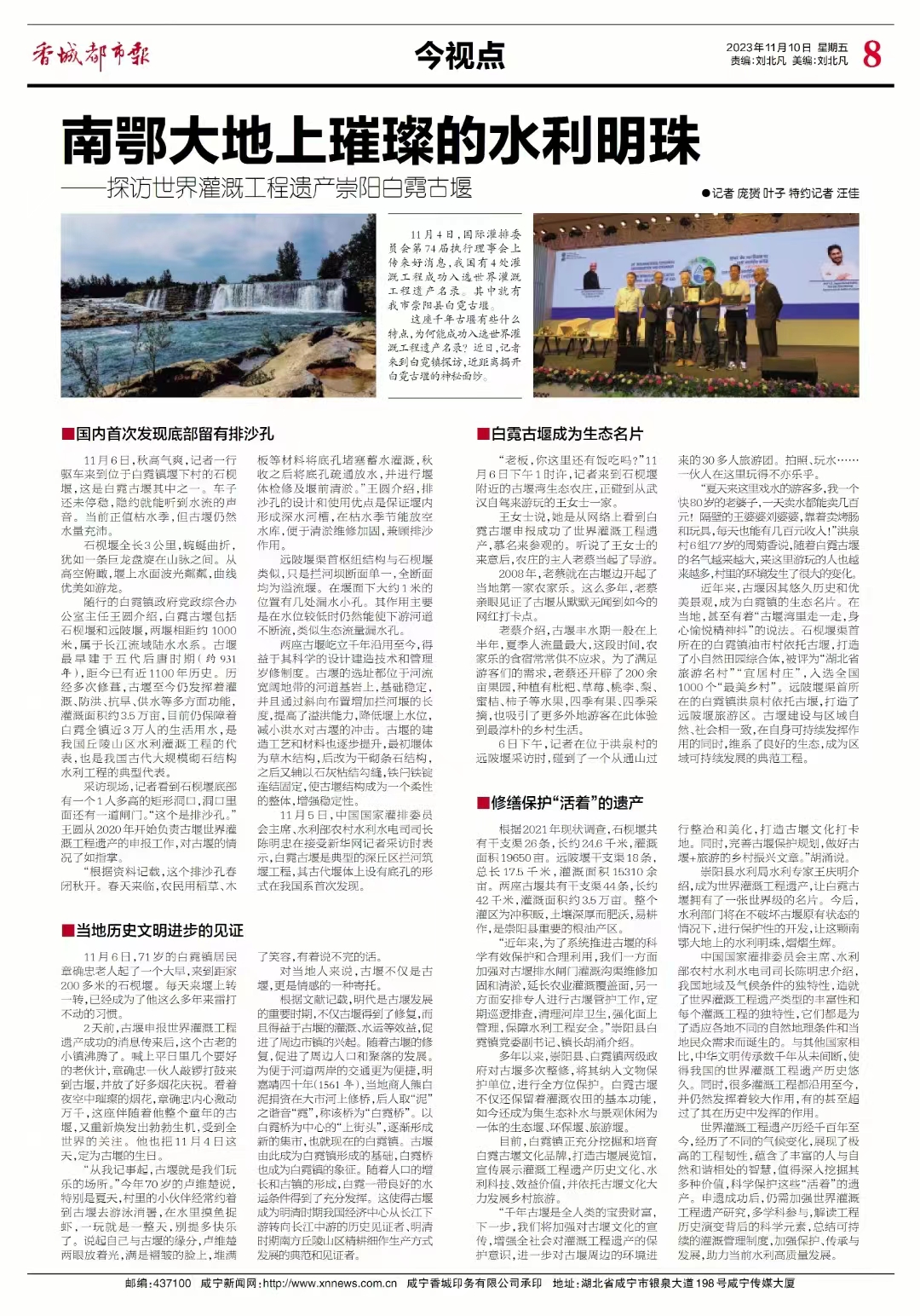 11月4日,国际灌排委员会第74届执行理事会上传来好消息,我国有4处灌溉工程成功入选世界灌溉工程遗产名录。其中就有我市崇阳县白霓古堰。