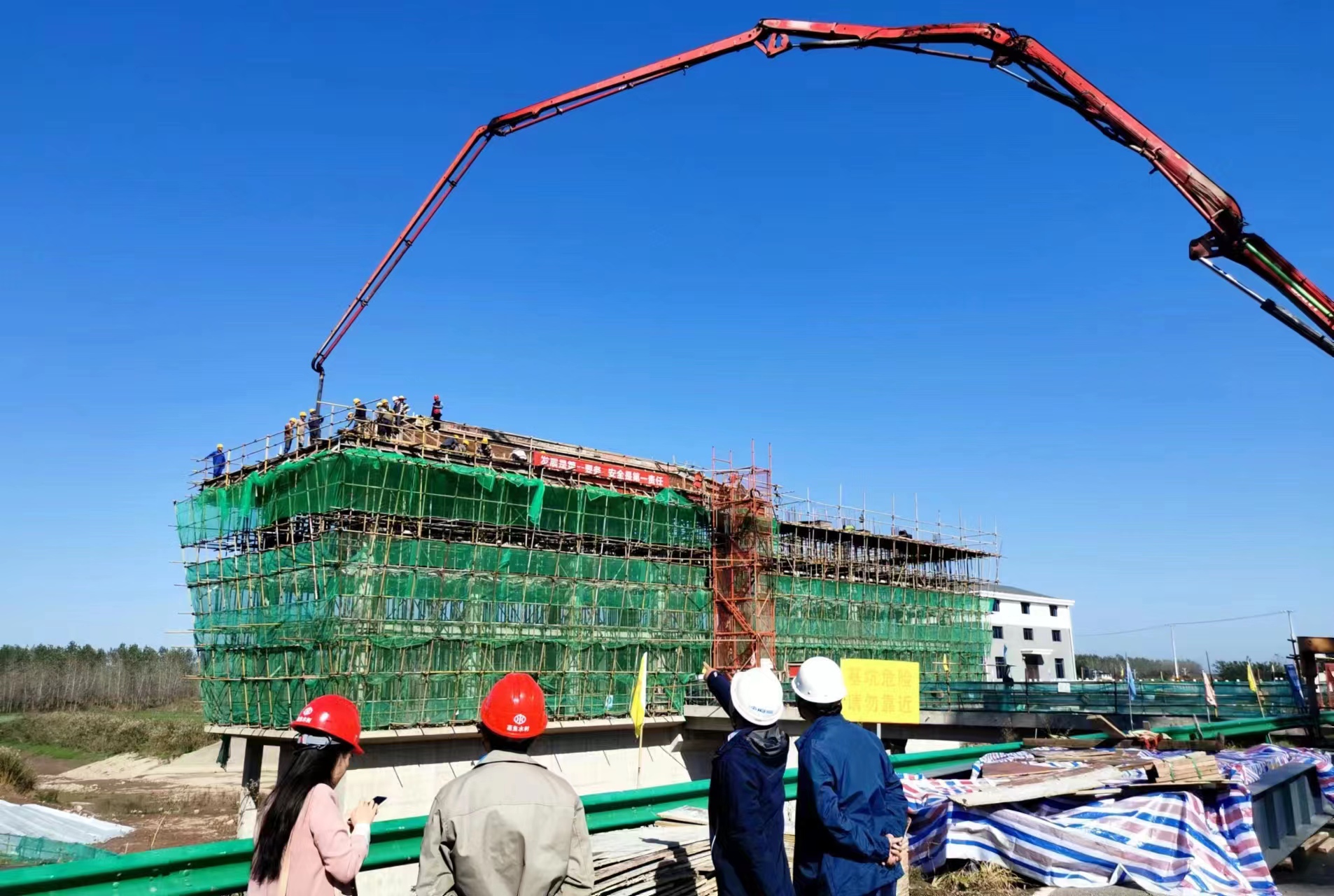11月15日,嘉鱼县余码头泵站更新改造工程现场,大型机器轰鸣,施工人员正在有序作业。
