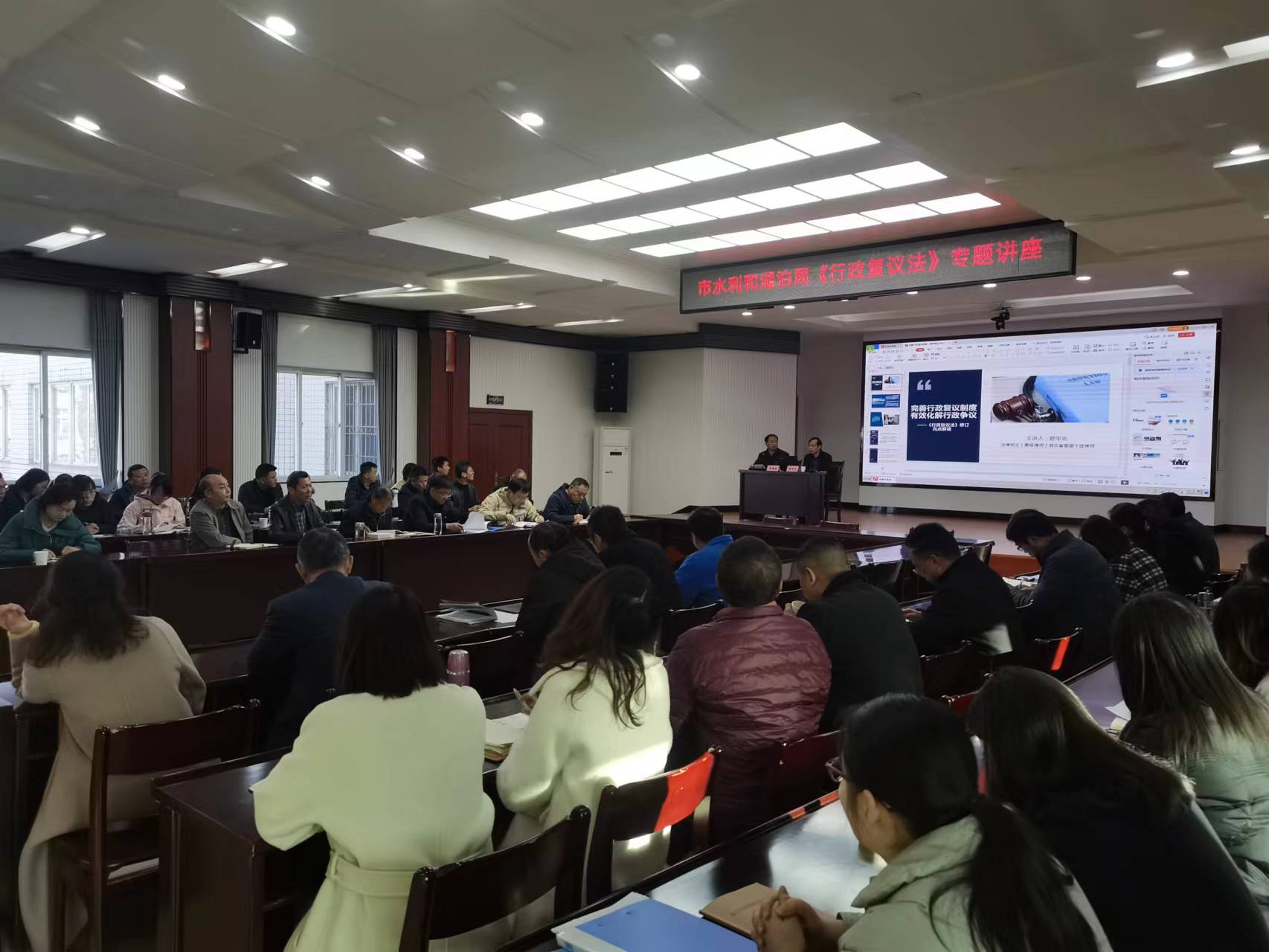 为深入开展学习宣传习近平法治思想,全面宣传贯彻新修订的行政复议法,进一步提高市直水利系统干部职工法治素养。12月8日上午,市水利和湖泊局举办行政复议法专题讲座,邀请市人大立法顾问、市普法讲师团成员舒宇光律师作专题讲座。市水利和湖泊局党组书记、局长郑耀英主持会议,市直水利系统约60名干部职工参加讲座。