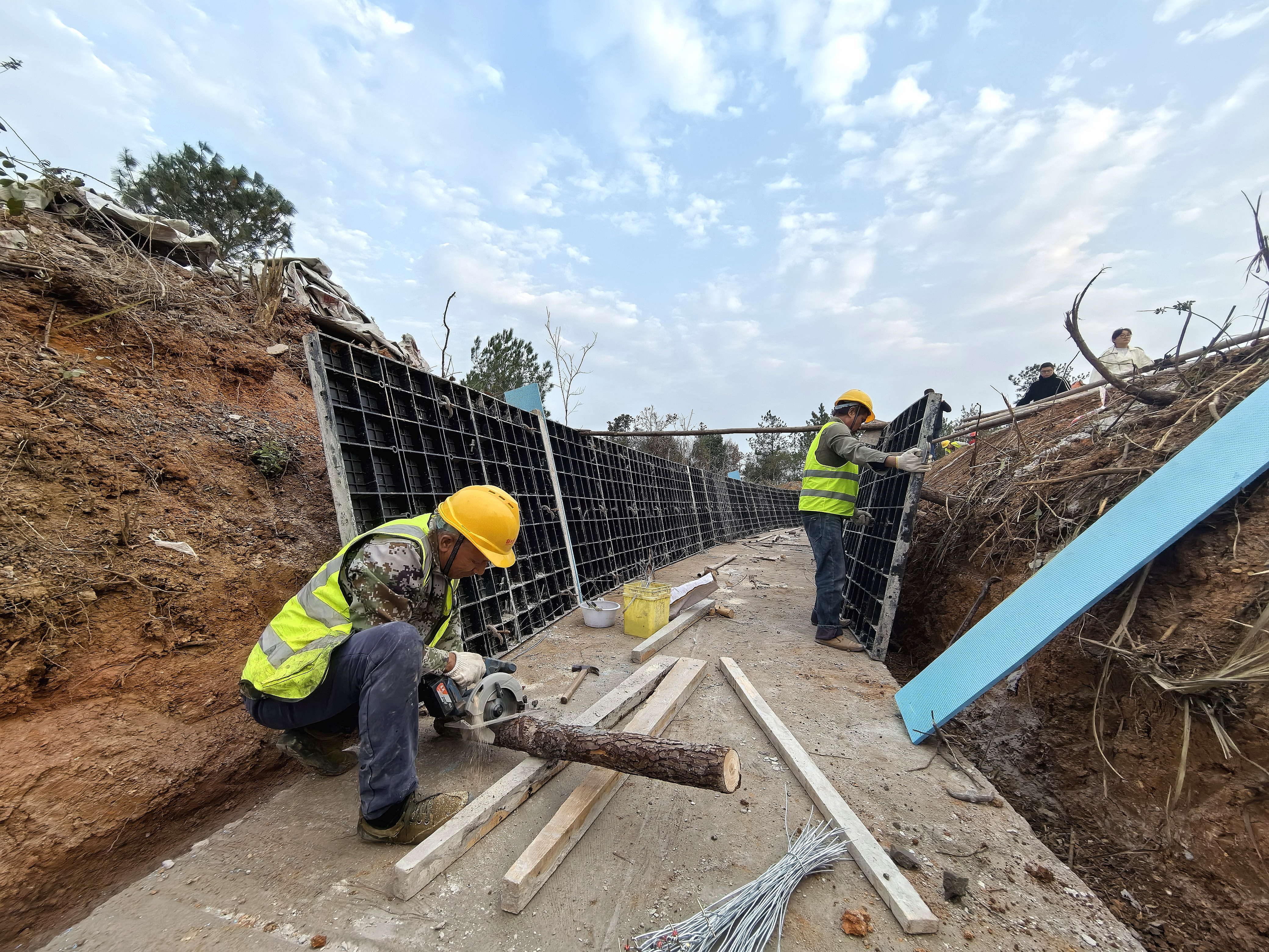 12月1日,在崇阳县石城镇神口村石壁水库神口引水渠综合治理项目现场,工人们热情高涨,30个工人正在忙碌地进行渠道模具安装施工,5台挖机则在协同进行开挖作业,轰鸣声此起彼伏,现场一片热火朝天的景象。