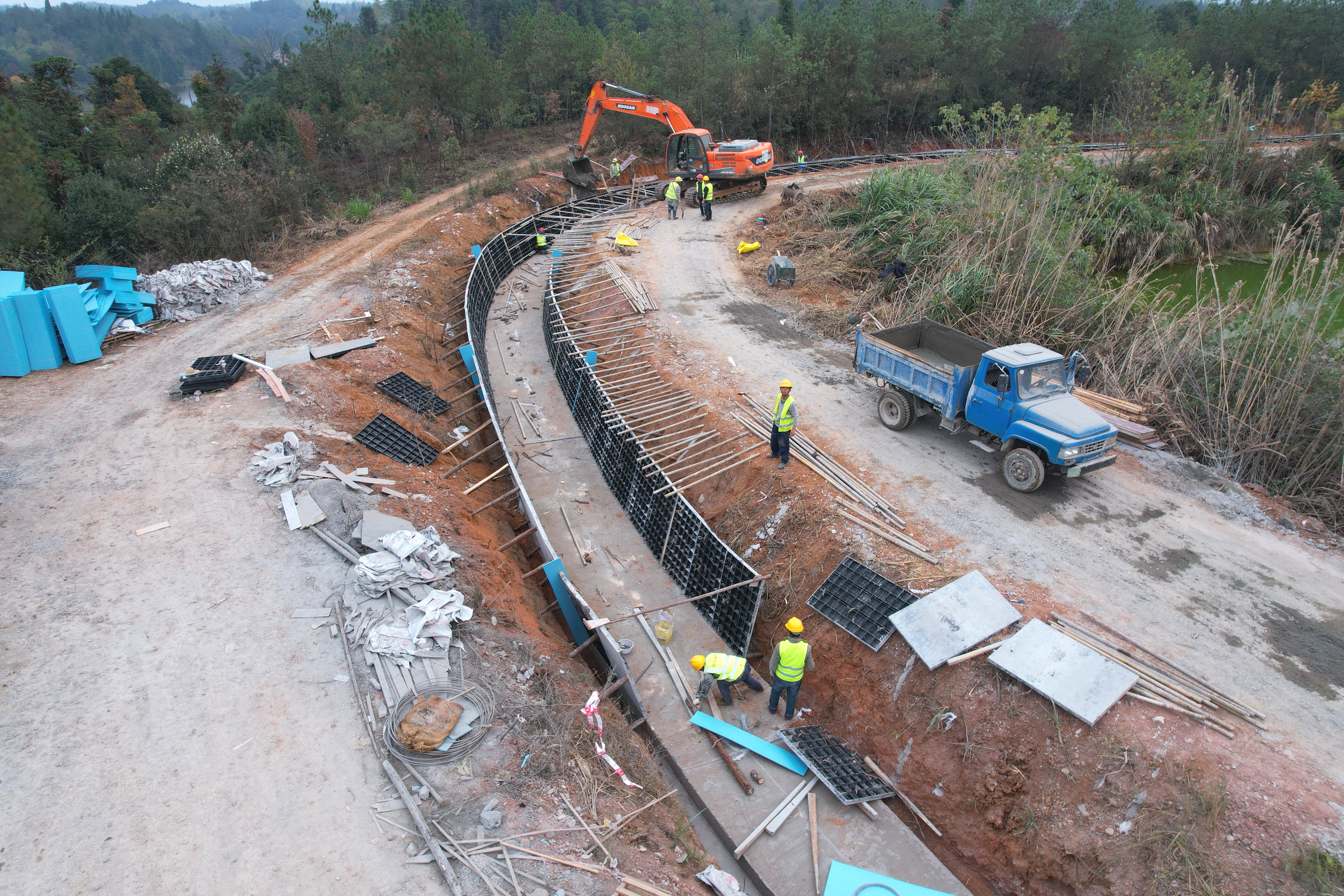 在通城县,为了早日实现“清澈渠水奔涌而出,一路欢奔而下,灌溉滋润农田”的愿景,石壁水库引水渠项目和东冲灌区改造都在抢抓秋冬季节晴好天气,抓紧施工。