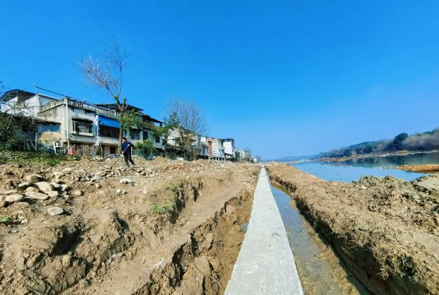 河滩清理清表、开挖河堤基础、脚槽浇筑……看着一条坚固耐用的河堤已初具规模,詹进福和沿岸居民满是幸福和期待:“希望河堤早日建成,我们在河边生活得更安心、更舒心。”