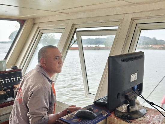 崔泽武正在操作船只清理湖底淤泥。黄铮 摄