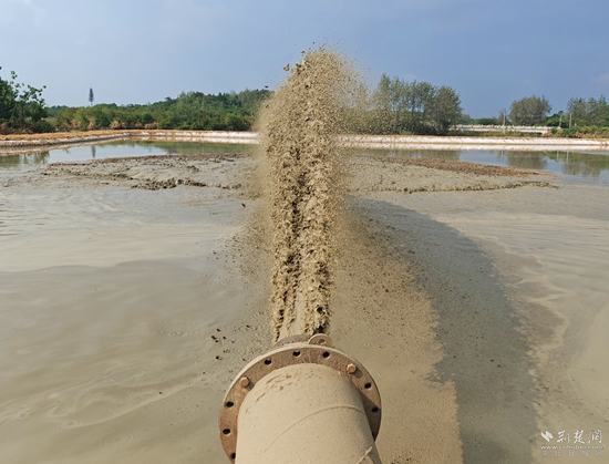 泥水经管道抽入处理池中。黄铮 摄