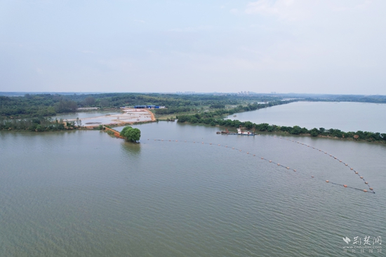 斧头湖王生茂河河口试点清淤工程项目现场航拍。通讯员 李欣 摄