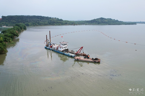 工作人员配合操作铰吸式挖泥船。通讯员 李欣 摄