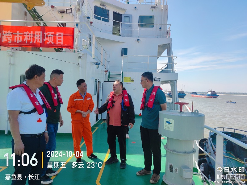 在嘉鱼县河道采砂疏浚砂项目现场,市堤防局负责人与县水利和湖泊局分管领导、项目负责同志共同探讨了河道采砂管理相关问题,严格遵循“生态优先、科学规划、严格控制、规范开采、依法监管”的原则,按照省水利厅批复要求,抓好现场监管职责,确保河道采砂持续有效可控,维护好河湖健康生命。