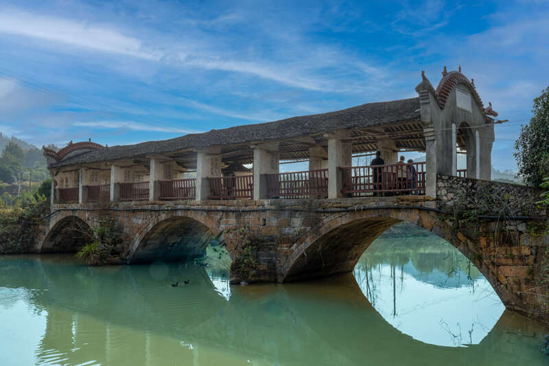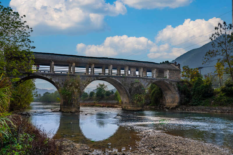 万寿桥为三孔四墩石拱桥廊桥,桥墩呈棱形,桥上建有风雨亭,桥上竖有一块石碑,“道光贰拾陆年修建”几个大字清晰可见,万寿桥为咸安古桥的一部分,于2008年3月27日被湖北省人民政府公布为第五批重点文物保护单位。湖北大学 林芳灏/摄