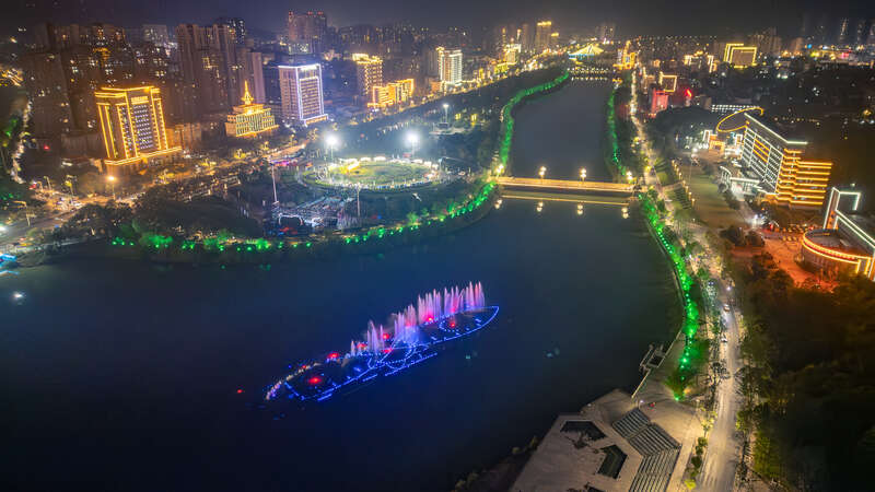 咸宁城区夜景,淦河穿城而过。湖北大学 林芳灏/摄