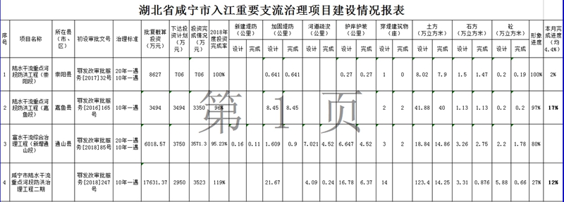 湖北省十大信誉彩票平台入江重要支流治理项目建设情况报表(2019.3.26)