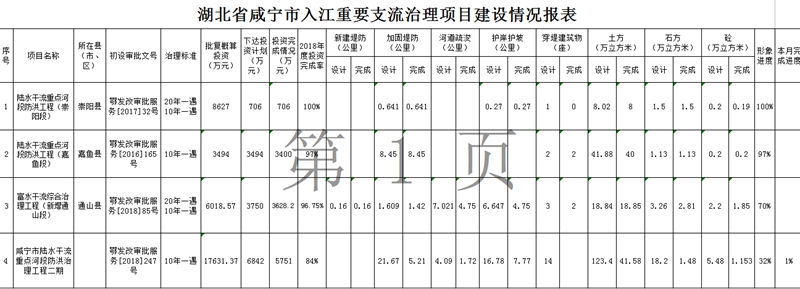 湖北省彩票平台入江重要支流治理项目建设情况报表(2019.4.29)