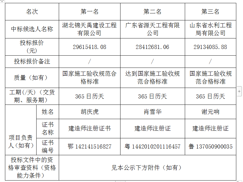 三峡后续工作长江中下游影响处理湖北咸宁嘉鱼段河道整治工程(二期)(嘉鱼部分)三峡后续工作长江中下游影响处理湖北咸宁嘉鱼段河道整治工程(二期)(嘉鱼部分)第二标段于2021年09月29日在十大信誉彩票平台电子招投标交易平台发布招标公告,2021年10月29日在D303开标,并于2021年10月30日完成评标工作。根据评标委员会提交的评标报告,嘉鱼县河道堤防管理局已经确认评标结果,现进行评标结果公示。