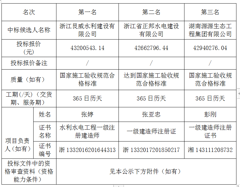 三峡后续工作长江中下游影响处理湖北咸宁嘉鱼段河道整治工程(二期)(嘉鱼部分)三峡后续工作长江中下游影响处理湖北咸宁嘉鱼段河道整治工程(二期)(嘉鱼部分)第一标段于2021年09月29日在彩票平台电子招投标交易平台发布招标公告,2021年10月29日在D303开标,并于2021年10月30日完成评标工作。根据评标委员会提交的评标报告,嘉鱼县河道堤防管理局已经确认评标结果,现进行评标结果公示。