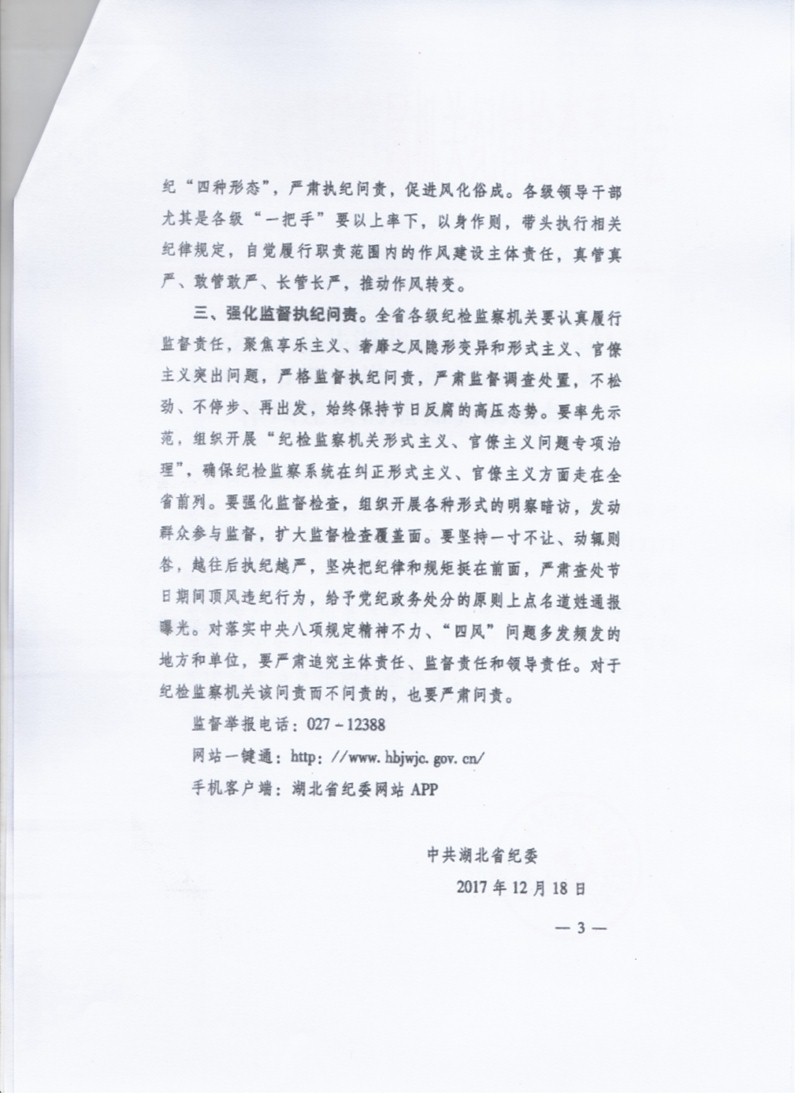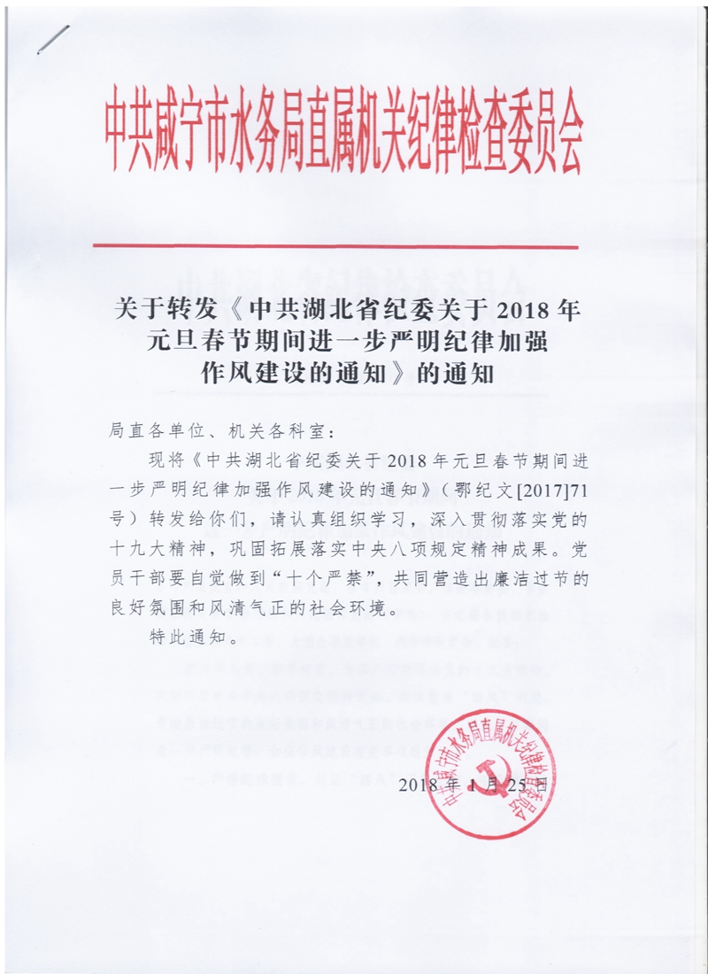 关于转发《中共湖北省纪委关于2018年元旦春节期间进一步严明纪律加强作风建设的通知》的通知