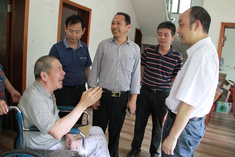 在洪口村,老党员赵朝志因中风落下后遗症,行动不便,家庭生活困难,看到徐学利一行人的到来,赵朝志热泪盈眶,领导们仔细询问了赵朝志的病情及治疗情况,嘱咐他要树立信心,加强锻炼,积极治疗。老支书蔡永祥因车祸卧床休养,徐学利一行祝他早日康复,继续为村级经济社会发展发挥余热。