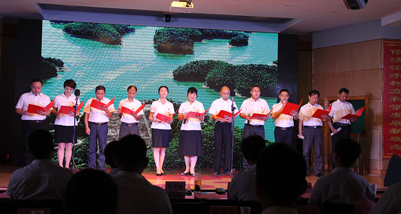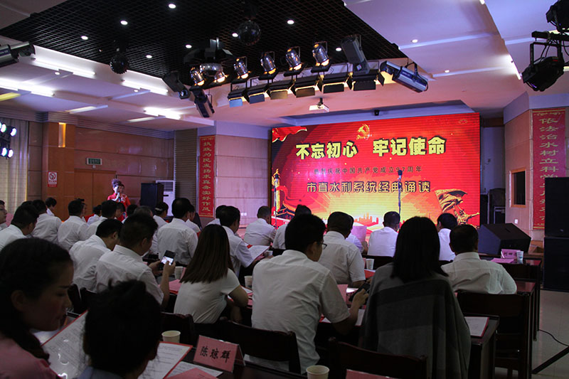 为贯彻市委组织部、市委宣传部相关文件精神,隆重庆祝建党97周年,弘扬革命精神,推进机关文化建设,激励教育党员干部不忘初心、牢记使命,7月27日,市直水利系统在三楼会议室隆重举行庆祝建党97周年红色经典诵读,全系统110多名党员参加朗诵。市委宣传部常务副部长王胜弘应邀出席并讲话,市委组织部、市委文明办等领导也应邀出席。