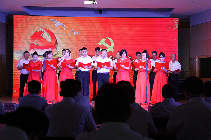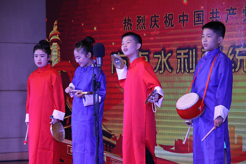 活动开场,全场人员高唱《入党誓词歌》,唤起全体党员的入党初心,凝聚浓厚的红色氛围。机关第一党小组随后朗诵《共产党宣言(节选)》,带领全体党员认识共产主义事业的真谛和共产党人的初心。堤防局总支带来的诗朗诵《信念永恒》昭示当代水利人坚定的共产主义信仰。《七月风 党旗红》《七月的天空》《有一首歌》等朗诵深情回忆建党97周年的光辉岁月。习近平《给父亲的一封家书》、方志敏《可爱的中国》及洪口村党支部带来的《向警予家书》等红色经典朗诵感人至深,催人奋进。亲子朗诵《歌唱祖国》及水利子女带来的《七一诵党三句半》形式新颖,轻快活泼。活动的最后,局领导班子带来诗朗诵《我骄傲 我是咸宁水利人》将活动气氛推向高潮,朗诵内容展现水利近年的水利成果,展现水利人的使命和担当,局领导带领全体水利人合诵“展未来,咸宁水利人红心向党,豪情万丈,乘着十九大的东风,踩着新时代的鼓点、再创辉煌、再谱新篇!”。整场朗诵或正义凛然,或激昂澎湃,或低沉婉转,或热情洋溢,现场不时爆发出雷鸣般的掌声。