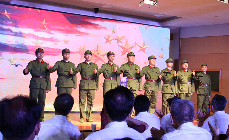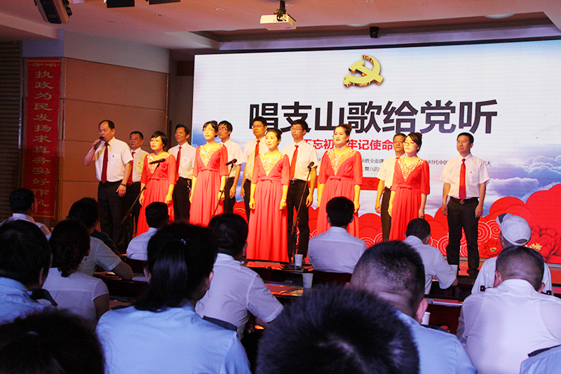 活动分为“红船起航”“东风浩荡”“走向复兴”三个篇章,《红船,从南湖出发》《七律·长征》《可爱的中国》等节目深情回顾党带领中国人民经历千难万险,一路扬帆起航、劈波斩浪的红色篇章;《唱支山歌给党听》《团结就是力量》《打靶归来》等脍炙人口的红色歌曲激情飞扬,鼓舞着水利党员干部励精图治、勇往直前;《共筑中国梦》《在水一方》《祖国,亲爱的祖国》引领咸宁水利人不忘初心、牢记使命,向着伟大复兴的中国梦阔步前行!最后一个节目,各支部高扬党旗,全体人员挥舞小红旗,高唱“我最亲爱的祖国,你像大海永不干涸,永远给我,碧浪清波,心中的歌……”将活动推向高潮,党员干部用歌声表达对党和国家的热爱。