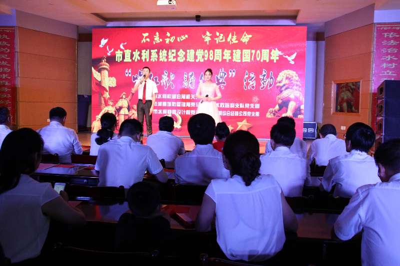 唱响红色经典,诵读经典诗篇。7月1日下午,市直水利系统所有支部集中开展主题党日活动,百余名党员欢聚一堂,举行庆祝建党98周年建国70周年“唱红歌 诵经典”主题活动。