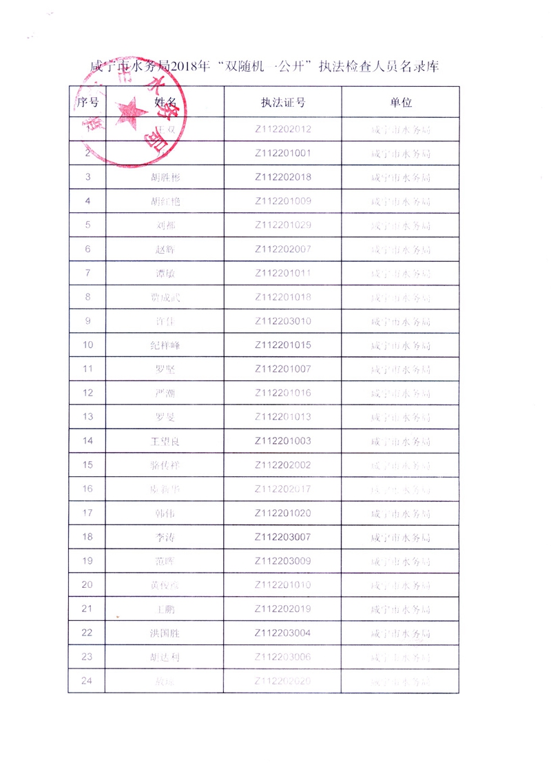彩票平台水务局2018年“双随机一公开”执法检查人员名录库