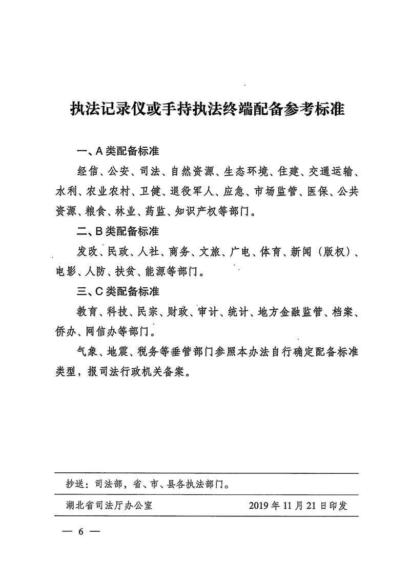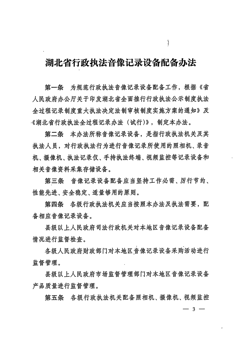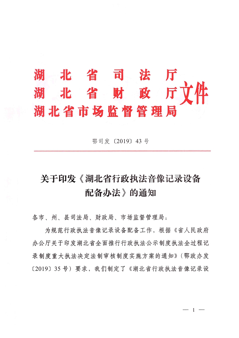关于印发《湖北省行政执法音像记录设备配备办法》的通知