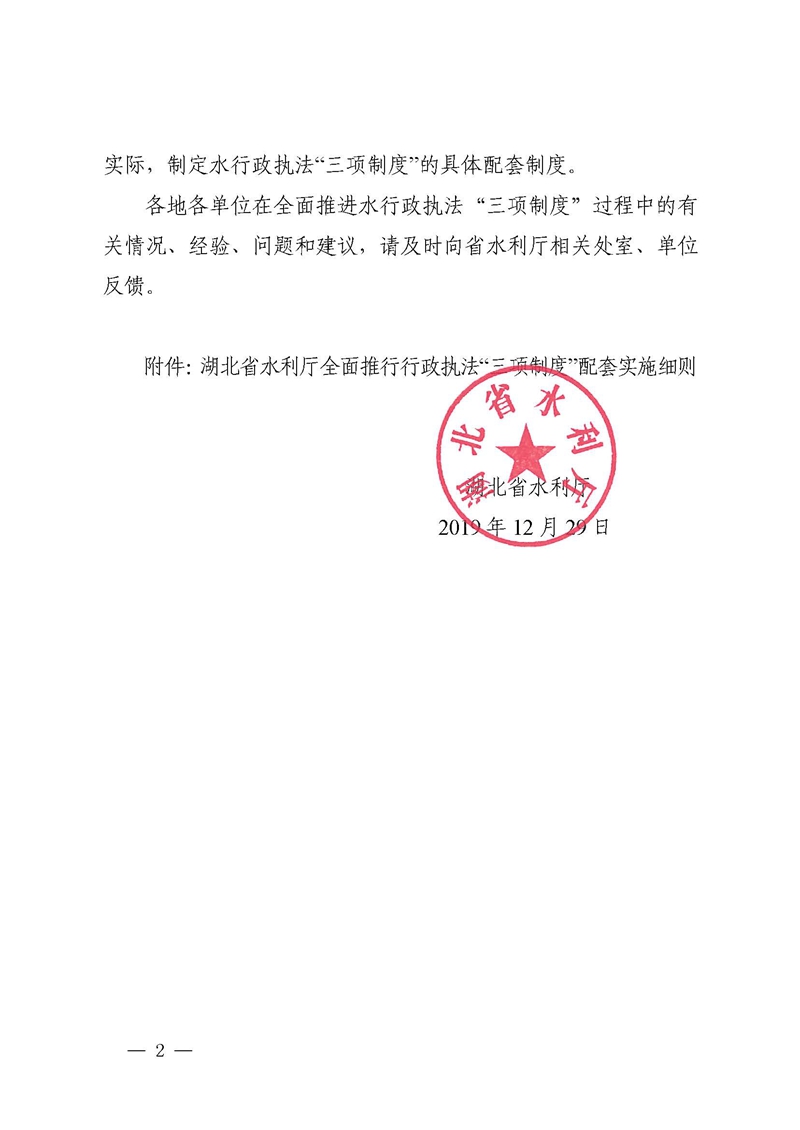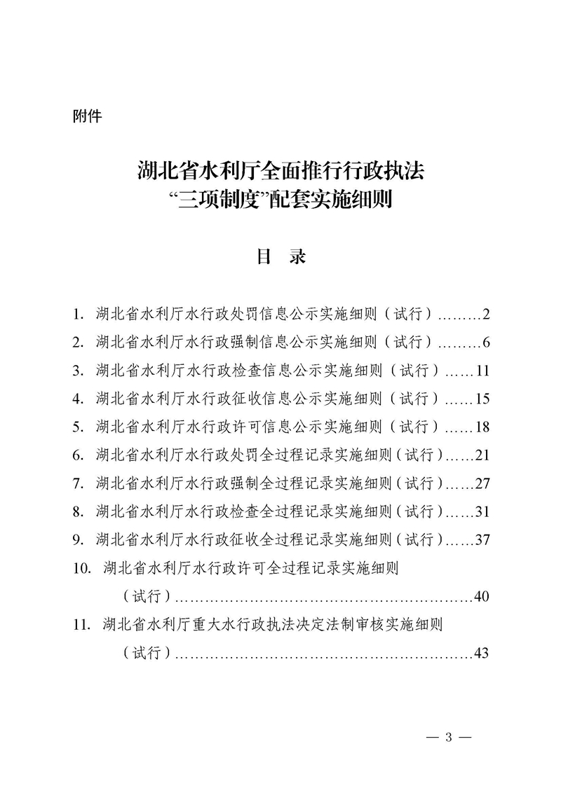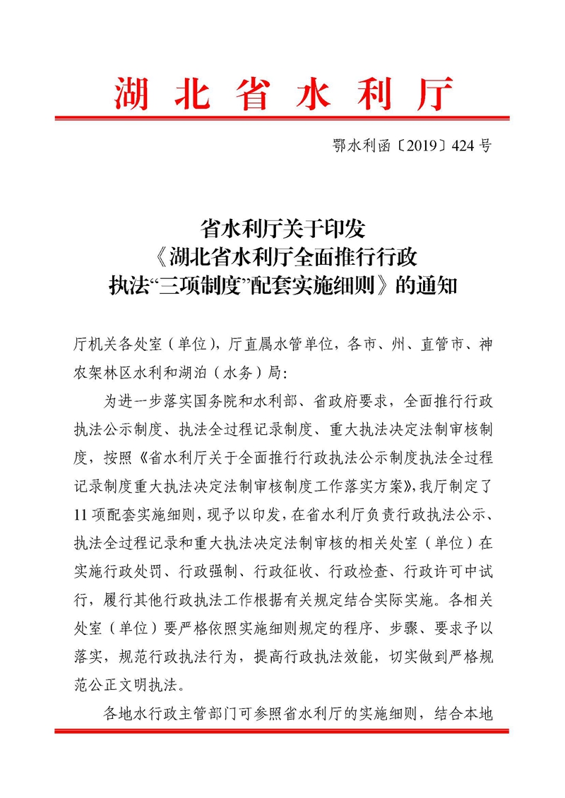 省水利厅关于印发《湖北省水利厅全面推行行政执法“三项制度”配套实施细则》的通知
