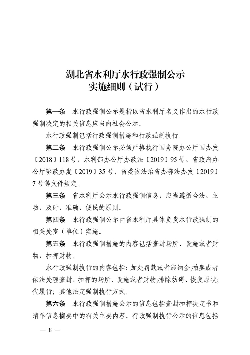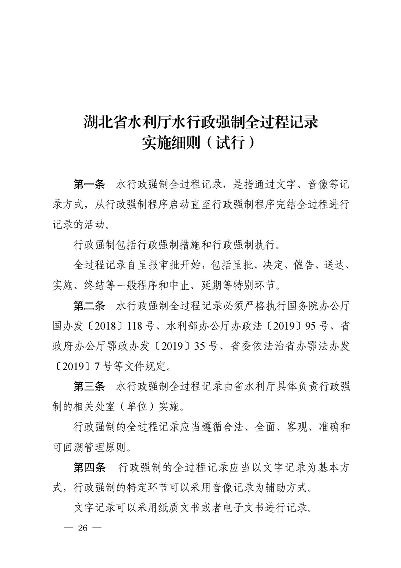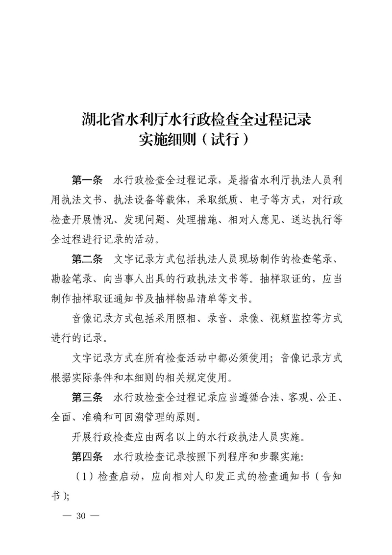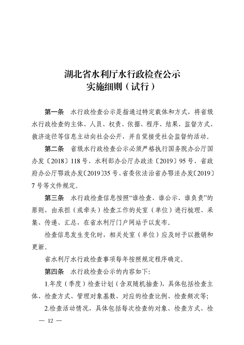 省水利厅关于印发《湖北省水利厅全面推行行政执法“三项制度”配套实施细则》的通知