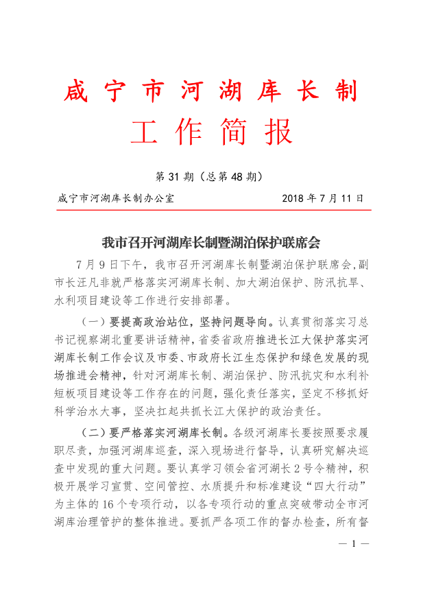 市河湖库长制第48期简报:我市召开河湖库长制暨湖泊保护工作会