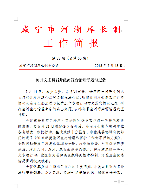 市河长制工作简报50期:何开文主持召开淦河综合治理专题推进会