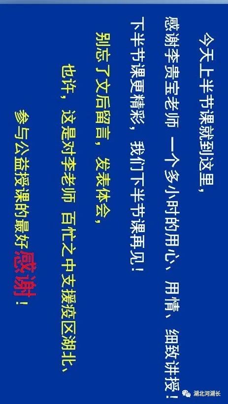 疫区的湖北河湖人、呵护人,大家辛苦了!得知湖北河湖长办开展网上培训公开课,我也愿志愿助力一下。