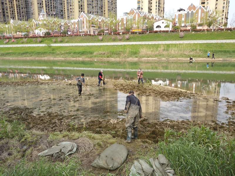 3月17日,在咸安区淦河海德公馆附近的水流平缓处,一群工人带着口罩、穿着雨靴、间隔5米以上在水中将8吨多本土植物苦草、金丝藻进行移栽,这是2020年市生态环境局咸安区分局首次在淦河河段人工移栽水草工作,也是在抓紧疫情防控的同时,持续改善、净化淦河河段水质“锦上添花”之举。