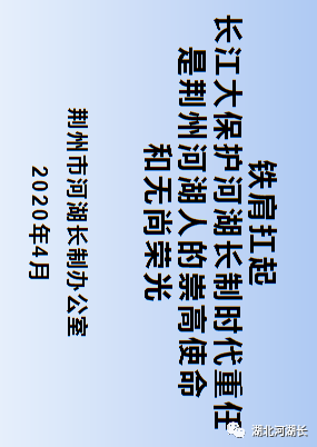 长江是中华民族的母亲河,更是荆州人民的母亲河。对荆州来讲,径流里程之长、流域面积之广、积累的矛盾之多,对人民群众生产生活和经济社会发展的影响之深远,是其他任何河湖都无法比拟的。特殊的地理位置,决定了荆州特殊的时代使命,特殊的时代使命召唤着荆州河湖人铁一般的历史担当!近几年来,荆州市委、市政府深学、细研、笃行习近平生态文明思想,尤其是习近平总书记关于推动长江经济带发展重要讲话精神,认真贯彻落实省委、省政府关于全面推行河湖长制的工作要求,稳步推进长江生态环境综合整治,收到了明显成效。今天,是网上公开课第9课,让我们请荆州市河湖长办李为同志为大家授课,题目是《铁肩扛起长江大保护的时代重任是荆州河湖人的崇高使命和无上荣光》。下面进入课堂。请大家认真听课,并深入思考、积极互动。温馨提示,学习打卡,一周内有效。李为