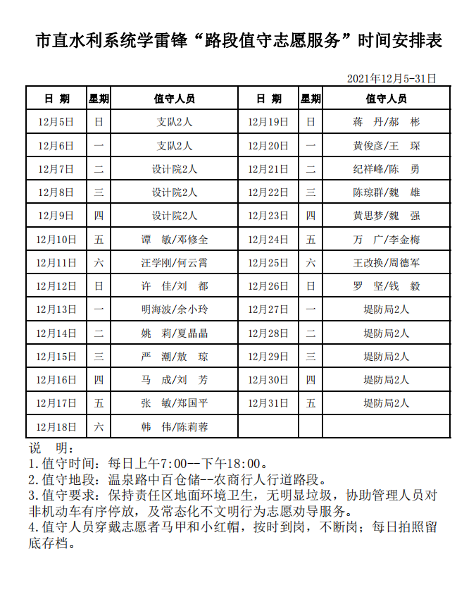 市直水利系统学雷锋“路段值守志愿服务”时间安排表