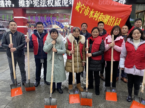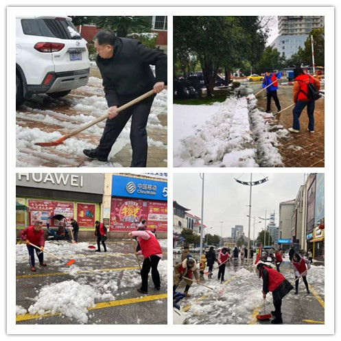 在党组书记、局长郑耀英的带领下,咸宁水利志愿者兵分三路,分头来到中百仓储门前、凤凰社区以及办公楼场地,大家拿着铁铲,干的热火朝天。积雪清理后,路面露出了本来的面目,极大方便了行人出行。