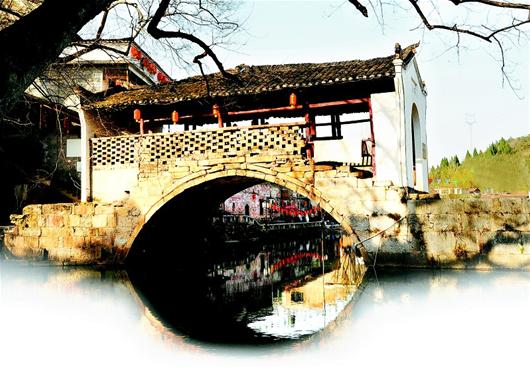 3月14日,丽日风和,春意初发,我们沿着斧头湖,在拙朴厚重曲折回廊的古桥上,漫步环行,在石板、青砖、沉木间沉思,在斗檐、危栏、灰瓦里慨叹,手伸处,往往是蛛网深灰,不时有斑驳的碎屑零落在我们发间。在这里,每一次触摸,都是感悟;每一次回望,都是历史,连接着昨天、今天和未来。