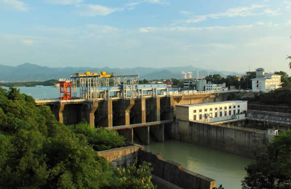 长江三峡试验坝——陆水水利枢纽工程将陆水河拦腰截断形成大(2)型水库,是我国重要的大型水利水电科研试验基地。这是中国水利史上第一次采用大块体预制安装筑坝施工方法的试验。陆水枢纽主体工程由主坝、15座副坝、泄洪建筑物、电站厂房、开关站、简易干运式垂直升船机、南北灌溉渠首等建筑物组成,枢纽建筑物总长3km,枢纽连线长6km,规模较大。主体工程和配套建筑设计因地制宜,整体协调、美观,观赏性好。
